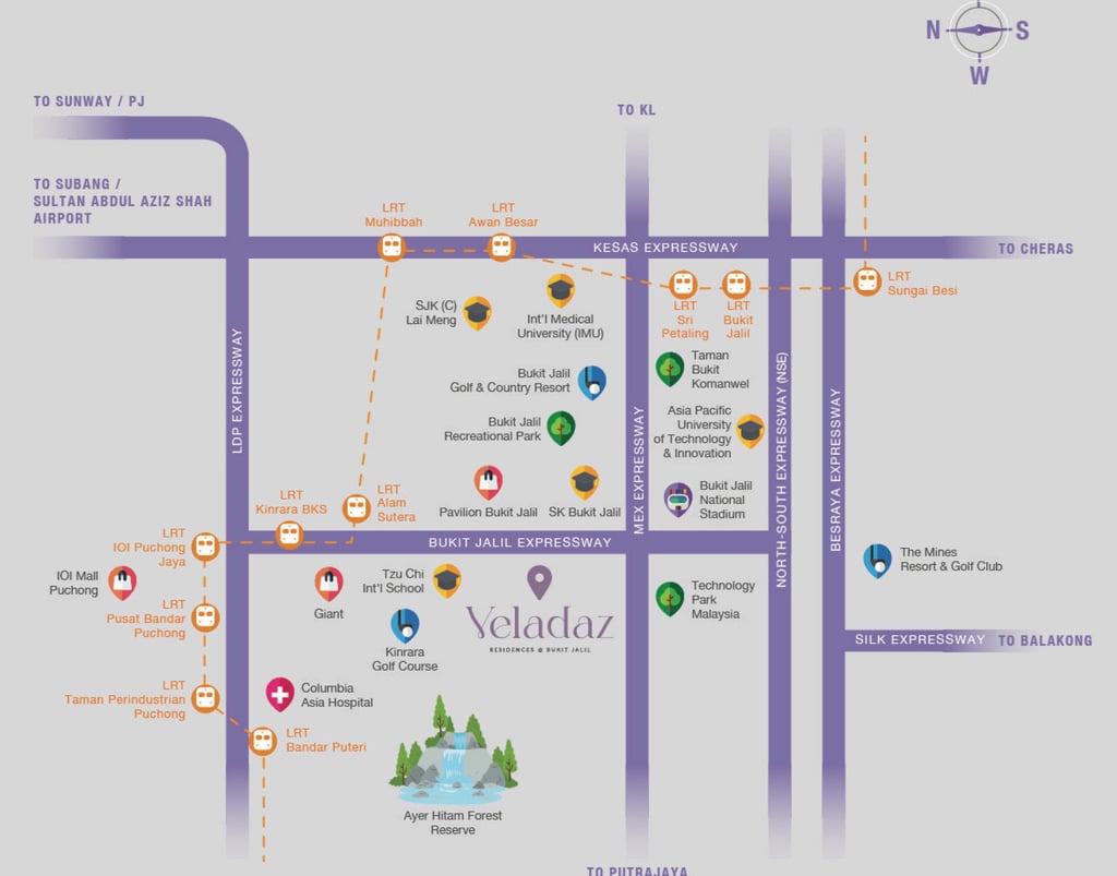 Veladaz Residences is connected to the rest of the Klang Valley by no less than six major highways and a range of public transport services. Residents are enclaved within a hyper-connected community.